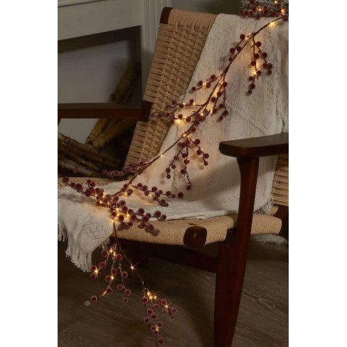 Yılbaşı süslemeleri için kokinalı led ışıklı dal süsleme garland 1,65 cm