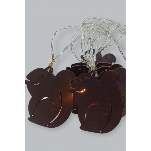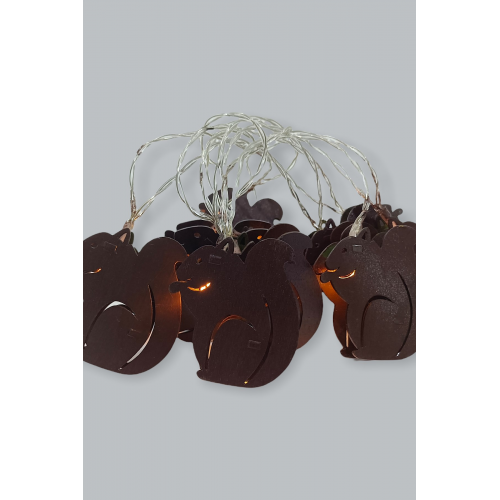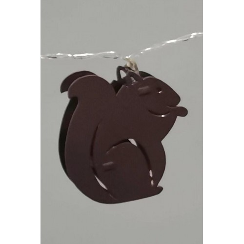 Sincap Led Işık. Kahverengi ahşap sincaplardan oluşan 10 ledli ışık zinciri.15cm led aralıkları,30cm uzatma kablosu.2AA pille çalışır piller ürüne dahil değildir.İç mekan kullanımına uygundur.Sonbahar ve kış süslemeleri için kullanılabilir