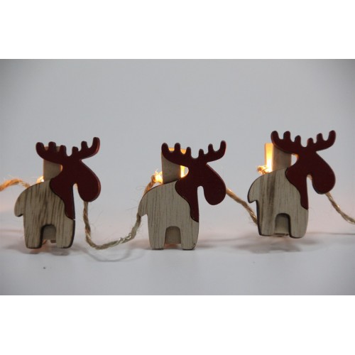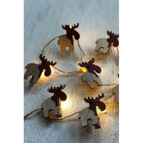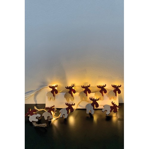 10 ADET NATUREL VE KIRMIZI RENKLERDE AHŞAP GEYİK ŞEKLİNDEKİ MANDALLARDAN OLUŞAN IŞIK ZİNCİRİ