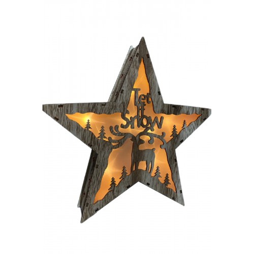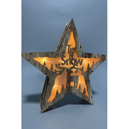 Let It Snow Geyikli Ahşap Yıldız Pano