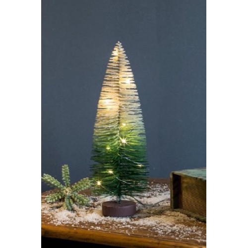 25,5cm yükseklik 9cm en ölçülerinde yeşil beyaz, simli ağaç gövdeli dekoratif peri led ışıklı ağaç.
