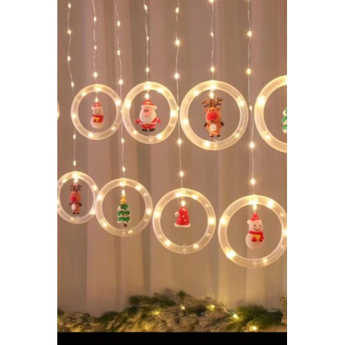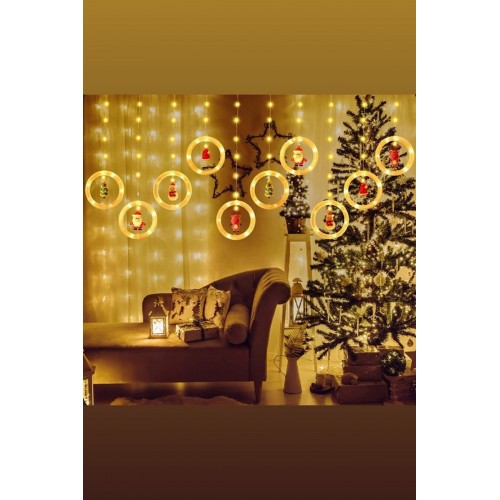 Yılbaşı dekorlu perde led. Sadece Noelbaba dekorludur.110 led. 7+5 5 sıra,5+5 5 sıra şeklinde 10 sıralı. 220 Volt adaptör. 3 metre eninde. Işık rengi günışığı.Fişle çalışır,animasyon modu vardır
