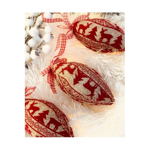 Yılbaşı Çam Ağacı Süsü Kumaş Kaplamalı Geyik Motifli Oval Süs 3lü Paket 11cm