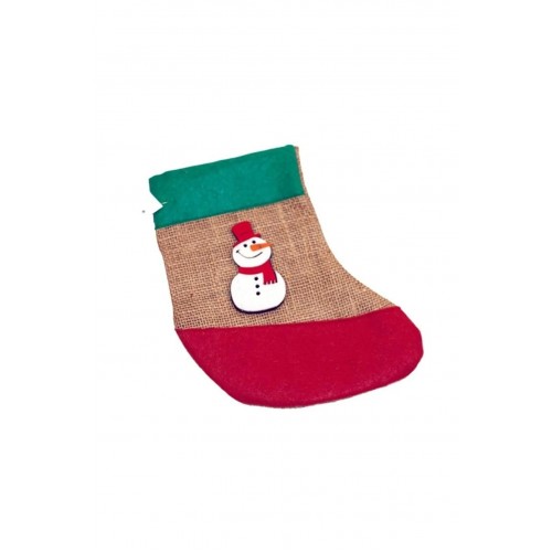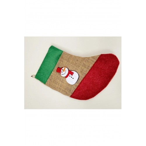 Yılbaşı, Yeniyıl, Christmas Çorabı, Kapı Süsü, Ağaç Süsü Kardan Adam Jüt Hasır Kumaş, Kırmızı