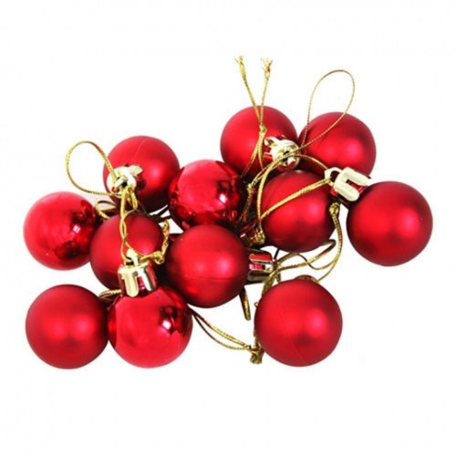 12lı Parlak Cici Top Yılbaşı Ağacı Süsü Kırmızı 4Cm