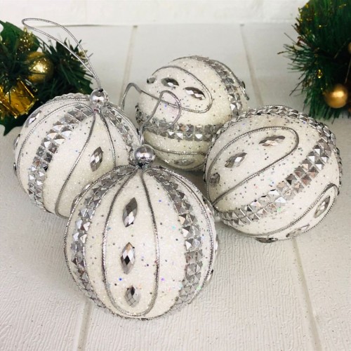 4'lü Luxury Seri Cici Top Ağaç Süsü Beyaz