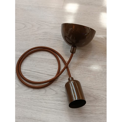 E27 KAHVERENGİ RENK DUY KILIFLI 1 METRE KUMAŞ KABLOLU TAVAN KANCA ROZANSLI SARKIT TESİSAT