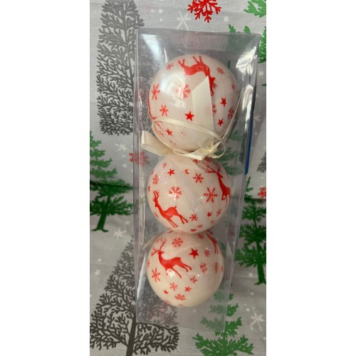 3'LÜ YILBAŞI ÇAM AĞACINA ASILABİLEN 8 CM LÜKS DESENLİ DEKOR SÜS