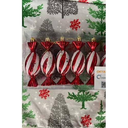 6'LI YILBAŞI ÇAM AĞACINA ASILABİLEN 12 CM LÜKS ŞEKER DESENLİ DEKOR SÜS