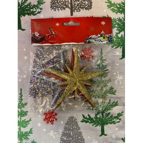 3'LÜ YILBAŞI ÇAM AĞACINA ASILABİLEN 10 CM NOEL KUTUP YILDIZI DEKOR SÜS