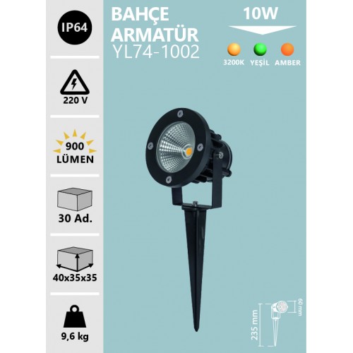 - Ürün Kodu: 10W LED BAHÇE ARMATÜRÜ GÜN IŞIĞI YEŞİL AMBER