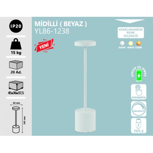 Etiketler: MIDILLI MASA LAMBASI ŞARJ EDİLEBİLİR WHITE- 3 RENK