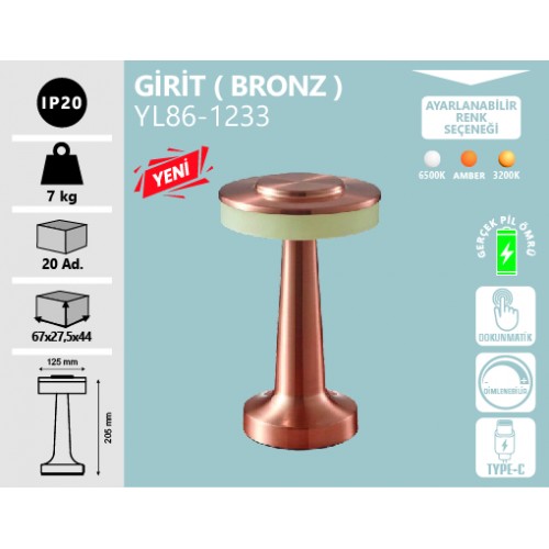 Etiketler: GIRIT MASA LAMBASI ŞARJ EDİLEBİLİR BRONZ-3 RENK
