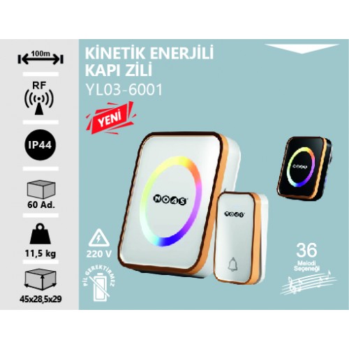 • Ürün Kodu: KABLOSUZ DİJİTAL KAPI ZİLİ-KİNETİK ENERJİ KONTROL