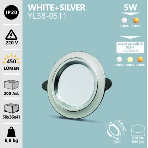 5W WHITE+SILVER LED SPOT BEYAZ GÜNIŞIĞI