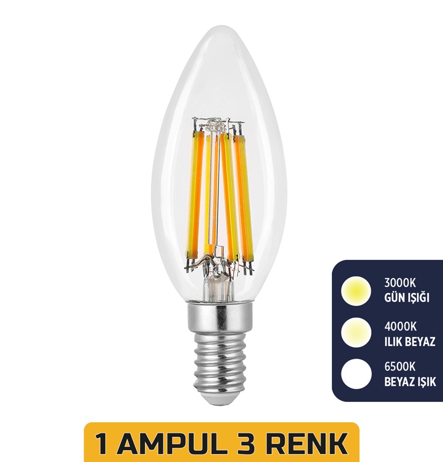 ERD-260 C35 ŞEFFAF DÜZ 6W 3 RENK E14 LED AMPUL