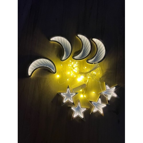 3 METRE GENİŞLİK 60 CM SAÇAK BOYU 3 BOYUTLU ANİMASYONLU AY ve YILDIZ SET PERDE LED IŞIK